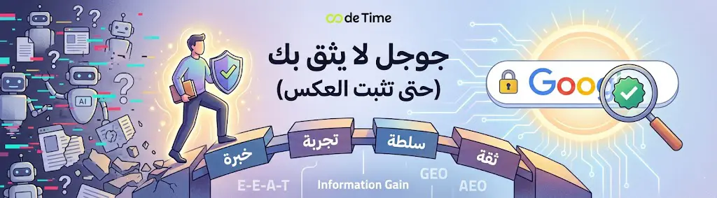 الإجابة المختصرة التي يبحث عنها كل صاحب موقع هي أن جوجل توقف عن تقييم الصفحات بناء على الكلمات المفتاحية فقط وبدأ يقيمها بناء على الثقة والكيان البشري المثبت خلف الشاشة. في عام 2026 إذا كان محتواك لا يقدم تجربة حقيقية أو معلومات إضافية لم يسبق ذكرها (Information Gain) فإن خوارزميات الذكاء الاصطناعي مثل Gemini وChatGPT ستعتبره ضجيجا رقميا. جوجل لا يثق بك لأن الإنترنت أصبح غارقا بملايين المقالات التي تولدها الآلات يوميا والتي تبدو صحيحة لغويا لكنها فارغة من المعنى أو التجربة. لكي تحصل على هذه الثقة يجب أن تثبت أنك شخص حقيقي لديه خبرة عملية (Experience) وسلطة معرفية (Authoritativeness) (معايير E-E-A-T) في مجالك مع توفير أدلة تقنية وبشرية واضحة في كل زاوية من موقعك. السر يكمن في التحول من “كتابة المحتوى لترتيب الروابط” إلى “بناء كيان موثوق تقتبس منه محركات البحث التوليدية” (GEO) وتعتبره مصدرا نهائيا للإجابة (AEO).